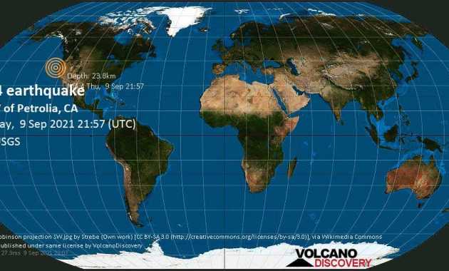 Image Credit: VolcanoDiscovery Moments ago USGS reported that a 4.3-magnitude earthquake struck 34 miles south of Eureka, Humboldt County, California, USA at a depth of 27.6km. As is usual, the […]