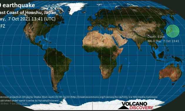 A 6.0-magnitude earthquake strikes near Honshu, Japan. Image Credit: VolcanoDiscovery Another earthquake struck Japan minutes ago. Japan has been struck by a series of medium to strong earthquakes over the past few days. The German Research Centre […] truthisacommodity October 7, 2021 Leave a Comment